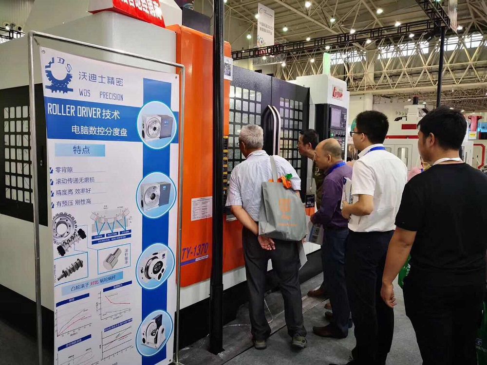 沃迪士攜帶了凸輪滾子結(jié)構(gòu)四軸,五軸轉(zhuǎn)臺(tái),臥加轉(zhuǎn)臺(tái)等產(chǎn)品亮相其中。同時(shí)沃迪士在合同伙伴機(jī)床上展示了單臂五軸T100及搖籃五軸RT350,并做了現(xiàn)場加工演示。吸引了大批專業(yè)觀眾的目光。