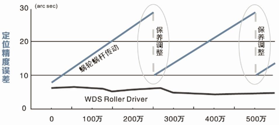 沃迪士機(jī)械(中國)有限公司生產(chǎn)的數(shù)控轉(zhuǎn)臺(tái)采用凸輪滾子結(jié)構(gòu),具有零間隙、高精度、高效率,維護(hù)成本低等優(yōu)點(diǎn),市面上普通的蝸輪蝸桿結(jié)構(gòu)轉(zhuǎn)臺(tái)渦輪采用磷青銅,使用大概半年以后出現(xiàn)背隙需要專業(yè)技術(shù)人員對(duì)轉(zhuǎn)臺(tái)重新調(diào)整恢復(fù)精度,而沃迪士轉(zhuǎn)臺(tái)采用凸輪滾子結(jié)構(gòu),凸輪滾子結(jié)構(gòu)是滾動(dòng)摩擦,入力軸和出力軸硬度達(dá)到HRC60度,可使用500萬轉(zhuǎn)精度無變化(如下圖所示:)。所以不需要用戶調(diào)整轉(zhuǎn)臺(tái)背隙,日常維護(hù)主要是潤(rùn)滑油的檢查和更換。